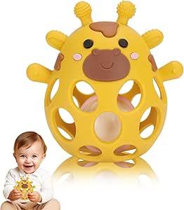 Venditer Hochet en silicone sensoriel pour bébé : Girafe - Hochet Bébé Motricité Jouet Montessori, Jaune : Amazon.com.be: Jouets
