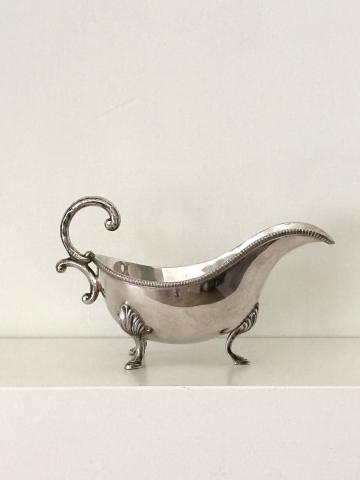 Silver-plated gravy boat EPNS, made in England. Classic design with an elegant look. Interior shows signs of use.