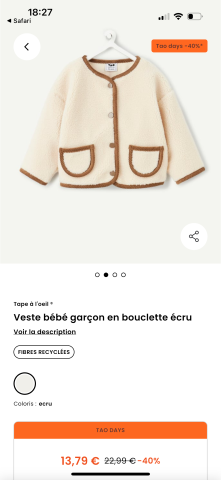 en toute liberté. Il est possible d'ajouter toutes vos envies cadeaux et de recevoir les dons directement sur votre compte. Avec les dons reçus, vous êtes alors libre d'aller acheter vos produits (comme ce 'Veste bébé garçon en bouclette écru - sandshell | Tape à l'oeil