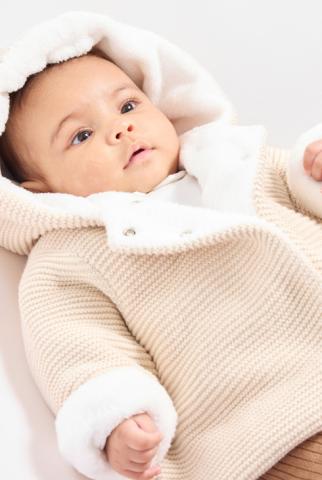 Un véritable écrin de douceur et de chaleur dès les premiers jours des petits ! Réversible pour deux fois plus de style, cette veste en maille fantaisie est doublée de soft boa. Capuche bien couvrante. Fermeture par pressions.