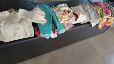 Notre demoiselle s'annonçant en grand format, nous avons déjà pris les devants avec des vêtements dits "6 mois", nous ne sommes pas certaines d'attendre novembre pour les enfiler...
