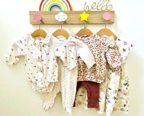 Nous avons acheté des vêtements en seconde main à des amis et voisins pour anticiper nos besoins pour les 6 premiers mois