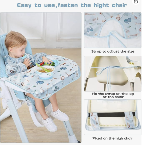 Bavoir Imperméable Se Fixe à Votre Chaise Haute Chaises Hautes Essentiel Couverture Complète Résistant à L'eau Taille Unique 6-36mois