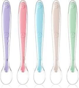 Vicloon Cuillère pour Bébé,5PCS Cuillere Bebe Silicone,Ensemble de Couverts pour Encourager Votre Bébé à Manger de Manière Indépendante,Sans BPA