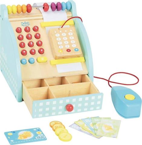 Vilac - Caisse enregistreuse en bois rose - La caisse enregistreuse en bois de la marque Vilac est l'accessoire indispensable pour tout bon marchand ! Cette caisse enregistreuse dispose d'un tiroir caisse