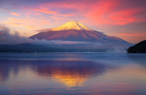 Le mont Fuji ) est une montagne du centre du Japon qui se trouve sur la côte sud de l'île de Honshū, au sud-ouest de l'agglomération de Tokyo. Avec 3 776 mètres d'altitude, il est le point culminant du Japon.