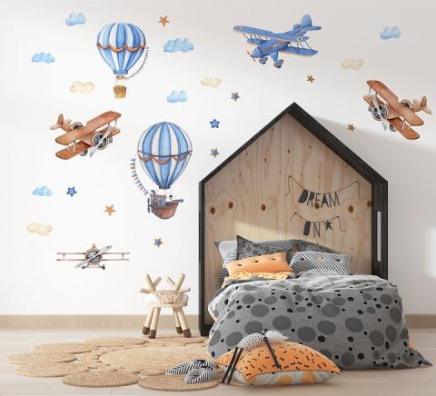 Laat je kleintje wegvliegen en de wereld verkennen met deze prachtige vliegtuigen. Ze zijn op zoek naar nieuwe deelnemers en we weten dat uw kind graag met vliegtuigen en heteluchtballonnen zou willen spelen. Deze muurstickers zijn een fantastisch decor voor de kamer van uw kind en stimuleren bovendien uitstekende emoties.