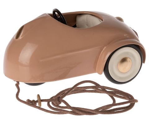 Cette voiture en métal est un moyen de transport idéal pour toutes les souris de taille petit frère/sœur, grand frère/sœur et maman/papa. La ficelle s'attache sous la voiture pour permettre à l'enfant de la tirer.