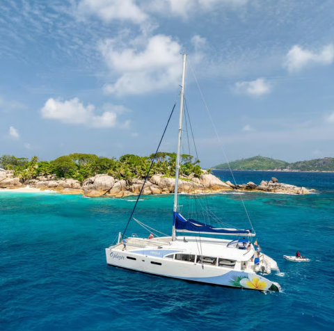 Participation à notre voyage de noce aux Seychelles. Ici pour une excursion depuis Praslin vers les iles Coco, Félicité et Sisters