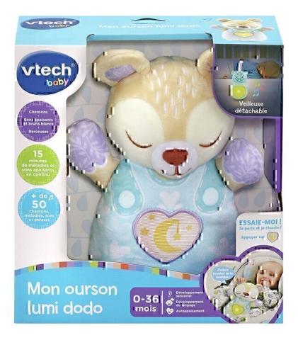 Cet ourson lumi dodo bleu de VTech Baby est une peluche de nuit avec veilleuse intégrée aux couleurs toutes douces pour endormir Bébé !