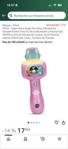 en toute liberté. Il est possible d'ajouter toutes vos envies cadeaux et de recevoir les dons directement sur votre compte. Avec les dons reçus, vous êtes alors libre d'aller acheter vos produits (comme ce 'VTech - Magic'Fun Pink Super Microphone, Wireless Karaoke Microphone for Children, Luminous Bluetooth Microphone that Changes Voice and Colour Changes, Musical Toy, Gift for Children from 2 Years : Amazon.com.be: Toys