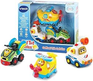 VTech - Tut Tut Bolides, Coffret Trio Loisirs, 3 Voitures Interactives, Avion à Hélices, Voiture de Police et Quad, Jouet Musical et Sonore, Cadeau Enfant de 1 An à 5 Ans - Contenu en Français : Amazon.com.be: Jouets