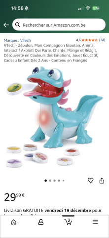en toute liberté. Il est possible d'ajouter toutes vos envies cadeaux et de recevoir les dons directement sur votre compte. Avec les dons reçus, vous êtes alors libre d'aller acheter vos produits (comme ce 'VTech - Zebulon, My Gluttonous Companion, Axolotl Interactive Animal Who Speaks, Sings, Eats and Reacts, Discovery in Colors of Emotions, Educational Toy, Gift for Children from 2 Years Old - Content : Amazon.com.be: Toys