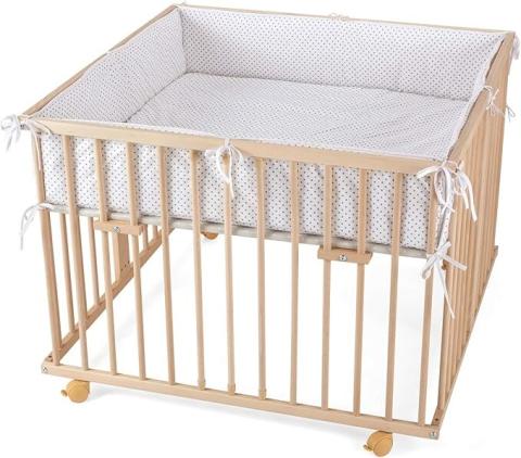 WALDIN - Parc pour bébé - environ 100 x 100 cm, HÊTRE MASSIF, réglable en hauteur, 2 motifs au choix, naturel non traité, couleur du tissu blanc/points gris : Amazon.fr: Bébé et Puériculture
