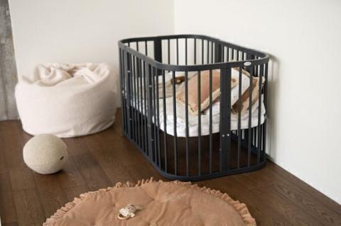 Waldin® Lit bébé en bois 7en1 avec matelas, berceau qui grandit avec l'enfant, ventilé, sommier réglable en 5 positions, set tout compris, Taille:Bois graphite,Couleur graphite