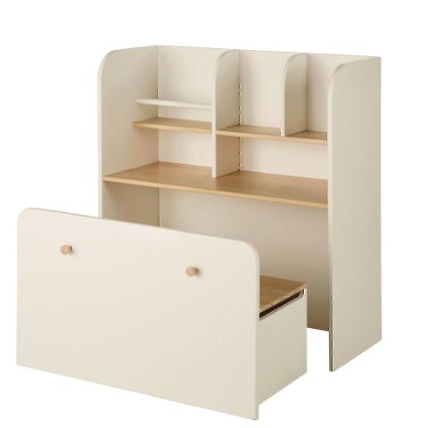 Découvrez le bureau bibliothèque enfant combiné écru à roulettes WAREN qui fera un bel espace de travail pour votre enfant !