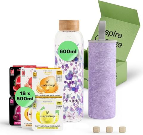 waterdrop® Coffret Dégustation Verre - Bouteille en Verre 600ml + 18 Cubes à Boire en 6 Saveurs, Boisson en Cube avec Vitamine C & Vitamine B, Sans Sucre, Gourde d'Eau, Coffret Cadeau Femme & Homme : Amazon.com.be: Cuisine et maison