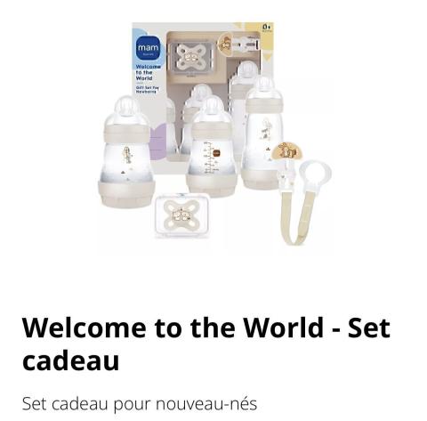 Ce produit est extrait d'une liste de naissance déposée sur Kadolog. Kadolog permet de créer des listes de naissance en toute liberté. Il est possible d'ajouter toutes vos envies cadeaux et de recevoir les dons directement sur votre compte. Avec les dons reçus, vous êtes alors libre d'aller acheter vos produits (comme ce 'Welcome to the World - Set cadeau ') où et quand vous le souhaitez.
