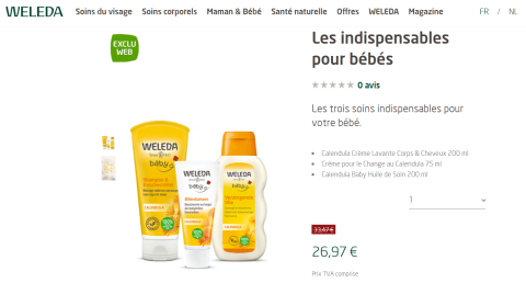 en toute liberté. Il est possible d'ajouter toutes vos envies cadeaux et de recevoir les dons directement sur votre compte. Avec les dons reçus, vous êtes alors libre d'aller acheter vos produits (comme ce 'Weleda les indispensables pour bébés