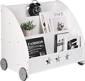 WOLTU Bibliothèque pour Enfants en Bois,étagère à Jouets 3 Niveaux Organiser pour Livres avec Roues pour Chambre d'enfant, Blanc