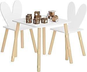 WOLTU Table et Chaises pour Enfants, Petite Table avec 2 Chaises, Meuble d’Enfants pour Manger et Peindre, dans Chambre d'enfant, Crèche, en MDF et Bois Massif, Blanc et Couleur de Bois : Amazon.com.be: Cuisine et maison