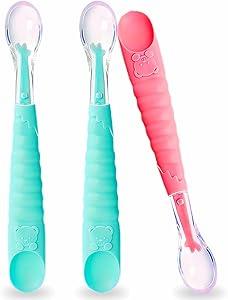 X3 Cuillères D'apprentissage pour bébé -SANS PLASTIQUE- multifonctions- lot de 3 pieces -1er Âge dès 4 mois - Manches Ergonomiques - Thermosensible en Silicone Souple- Compatible Lave-Vaisselle : Amazon.com.be: Cuisine et maison