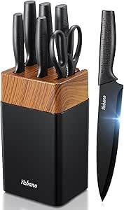 Yabano Ensemble de Cuisine 7 Pièces avec Bloc à Couteaux en Plastique et Meuleuse Intégrée, Lames en Acier Inoxydable Antiadhésives et Antirouille (Noir) : Amazon.com.be: Cuisine et maison