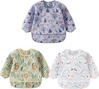 Yealoo 3 Pack Bavoirs Manches Longues Etanche Tablier d'Alimentation Enfant 5-30 Mois