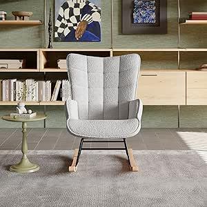 Yeutre Fauteuil d'allaitement rembourré en velours Teddy avec dossier à carreaux haut scandinave pour salon, chambre, balcon, salle d'étude, gris clair, 68 x 75 x 92 cm : Amazon.com.be: Cuisine et maison