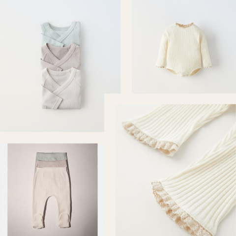 Lot de quatre petites tenues de jour en tissu tout doux achetées chez Zara pour habiller notre Poupette dès ses premières semaines!