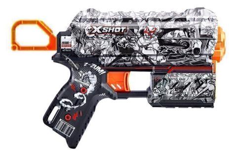 Attrape ton fusil X-Shot Skins Flux pourvu d'un skin Z-Zum et rejoins la bataille ! Place une fléchette dans le canon et 2 autres dans le chargeur et tire jusqu’à 27 mètres de distance ! Ne laisse aucune chance à tes adversaires !