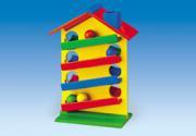 Un jeu de descente de billes qui suscite le mouvement et l'émerveillement chez les tous petits. Ils peuvent "mettre dedans et reprendre"; ce qui pourrait nous paraître monotone les fascinent! Excellent jouet. (Casse Noisettes)