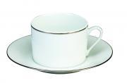 Deshoulières - Tasse et sous-tasse modèle "thé", modèle filet platine.