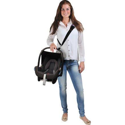 La sangle de cosy Dooky permet de porter l'enfant installé dans son siège auto sans le prendre par le bras. Ingénieuse, la sangle a été conçue pour répartir uniformément le poids du siège auto sur votre épaule gauche ou droite et votre dos.