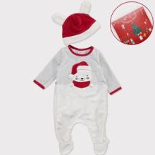 Grenouillère de Noël gris chiné en veloudoux et son petit bonnet que j'ai trouvé en soldes chez Serjent Major.