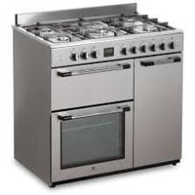 Gazinière piano avec au moins 5 becs à GAZ et avec fours ELECTRIQUES, chauffe plats... Chromée, et idéalement avec rotisserie...