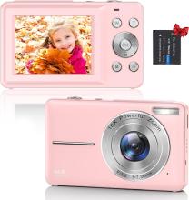Appareil Photo Numérique Compact - 1080P HD 44MP Caméra avec Carte 32Go, 2,4" LCD Rechargeables Appareil Photo Enfant avec 16X Digital Zoom pour Enfant, Adolescent, Étudiant, Adulte, Débutant (Rose)