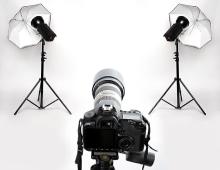 Lampadaire trépied en métal doré abat-jour en coton blanc 5EME AVENUE |
