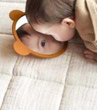 Pour éveiller bébé, un peu plus tard (non, bébé ne sera pas narcissique!).. Entièrement en silicone, il est facile à maintenir pour les petites mains et résistant aux chocs. De plus, son bras au dos lui permet de se poser n'importe où et de pouvoir jouer avec sans crainte.