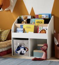 Idéal pour y ranger ses jouets, toutes ses BD et y organiser ses premières collections de livres de contes ! Très accessible, ce rangement bas est un excellent moyen de donner le goût de lire à l'enfant. Composé d'une partie de 2 cases pouvant accueillir des bacs de rangement et d'un espace bibliothèque supérieur compartimenté, ce meuble de grande capacité se nichera facilement dans la chambre ou la pièce de jeu.