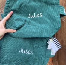 Petit sac à dos vert d'eau avec le prénom de notre baby