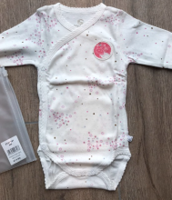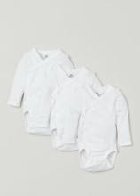 Bodies croisés en jersey souple de coton bio. Modèle à manches longues avec boutons-pression sur un côté et à l'entrejambe.