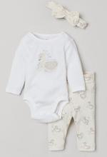 Ensemble 3 pièces en coton - Blanc/cygnes - ENFANT | H