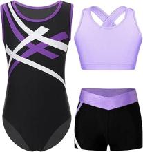 Sinleey Enfant Fille Justaucorps Gymnastique Brassière avec Short Gym Fitness Sport Yoga Ensemble Tenue Danse Entraînement Violet 7-8 ans : Amazon.fr: Mode