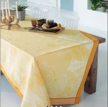 Nous aimons la couleur joyeuse de cette jolie nappe.