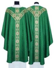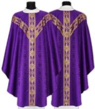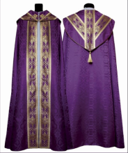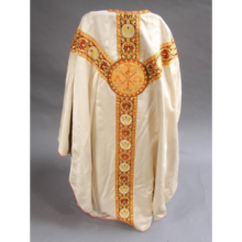 La fameuse chasuble rose qui sert deux dimanches par an, au milieu de l'Avent et du Carême. Le blanc de la fête se mêle au violet de la pénitence.