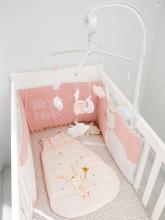 Tour de lit FEERIE rose/blanc - D’un coup de baguette magique, l’adorable lapin de ce tour de lit fait jaillir une pluie d’étoiles sur le sommeil de bébé.