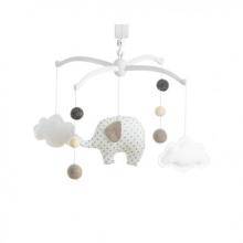 Ce mobile musical blanc de la marque Pouce et Lina est un incontournable des listes de naissance. Joyeux et poétique, il décorera la chambre de bébé.