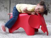 Un éléphant Eames en métal laqué rouge.