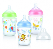 Exemple sur photo / Voorbeeld op foto: Biberon sans BPA natural touch anti-colique(anti-darmkrampjes) liner 1er âge bleu 180 ml de Nuby.